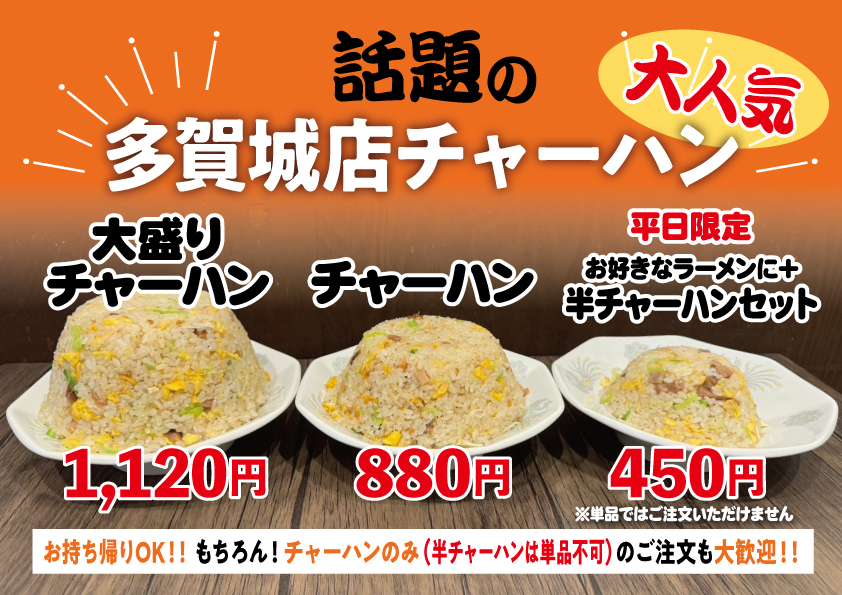 <平日限定> 半チャーハンセット | お好きなラーメン +450円 |
